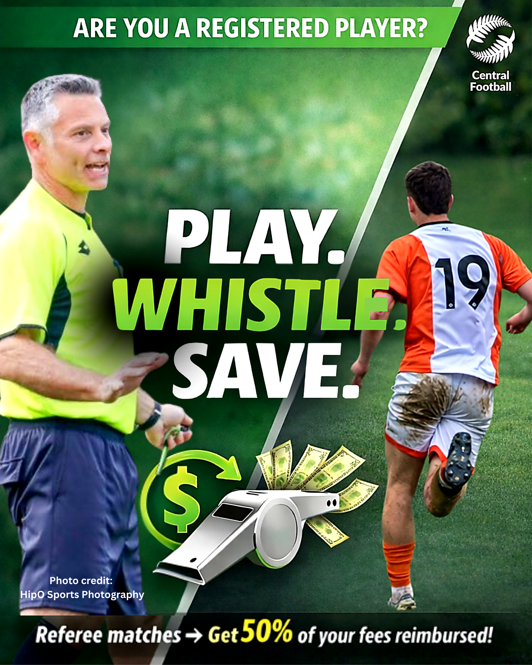 · Once the participant completes 10 matches as a referee, they simply send proof of their Playing Fee payment to Central Football and they will then receive a 50% reimbursement of these fees