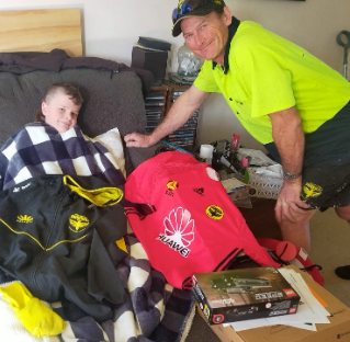 Great to see Van Fellingham back home after his incident a few weeks ago. Angus Hutton the club chairman of Woodville AFC visited van and delivered a few goodies from the Wellington Pheonix. Keep up the great recovery Van!